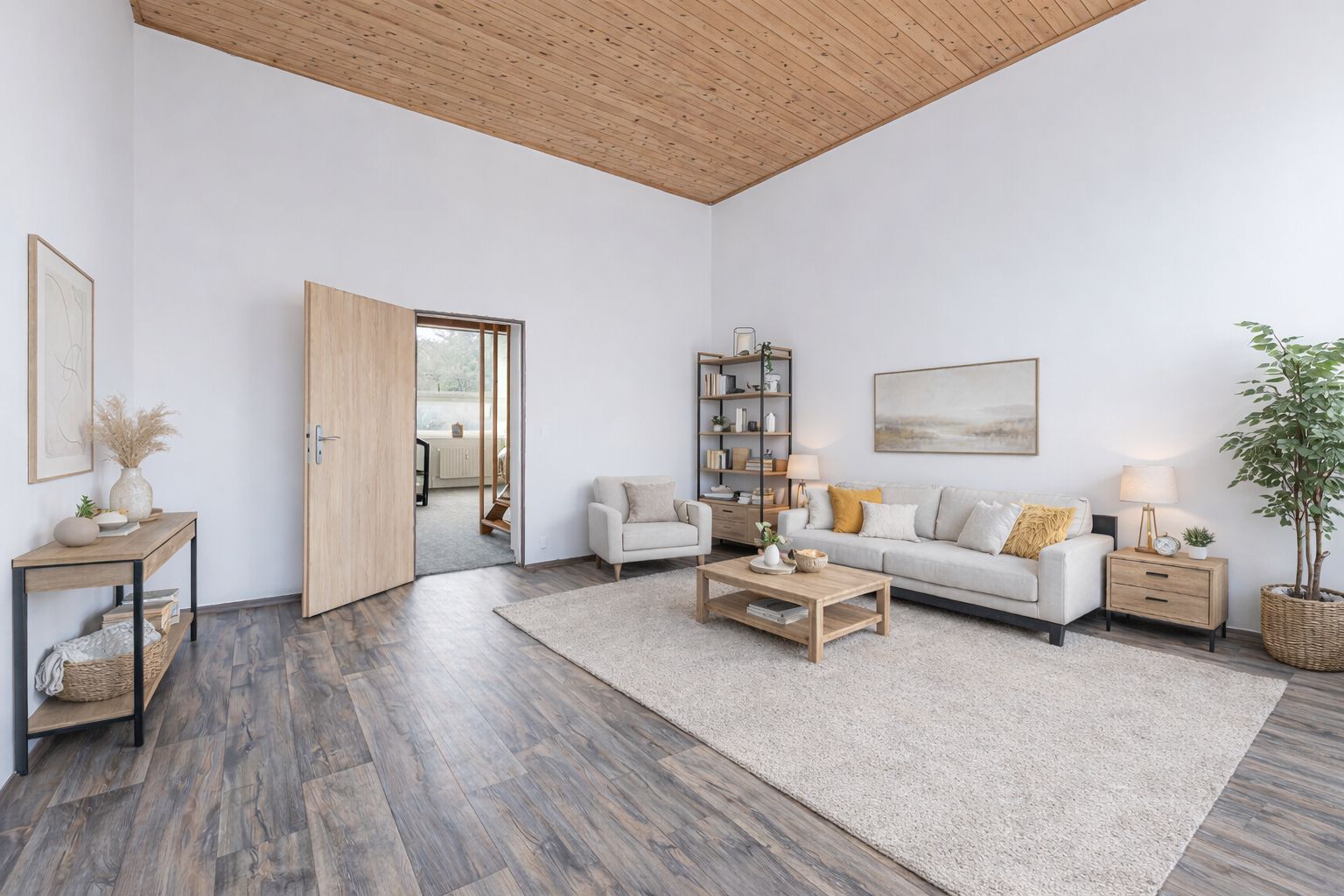 V obývacím pokoji najdete i menší mezipatro – ideální místo na relax po práci, pro čtení nebo tvoření.
